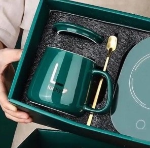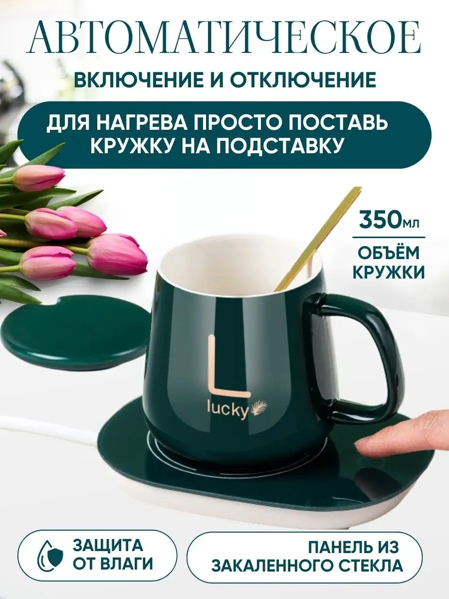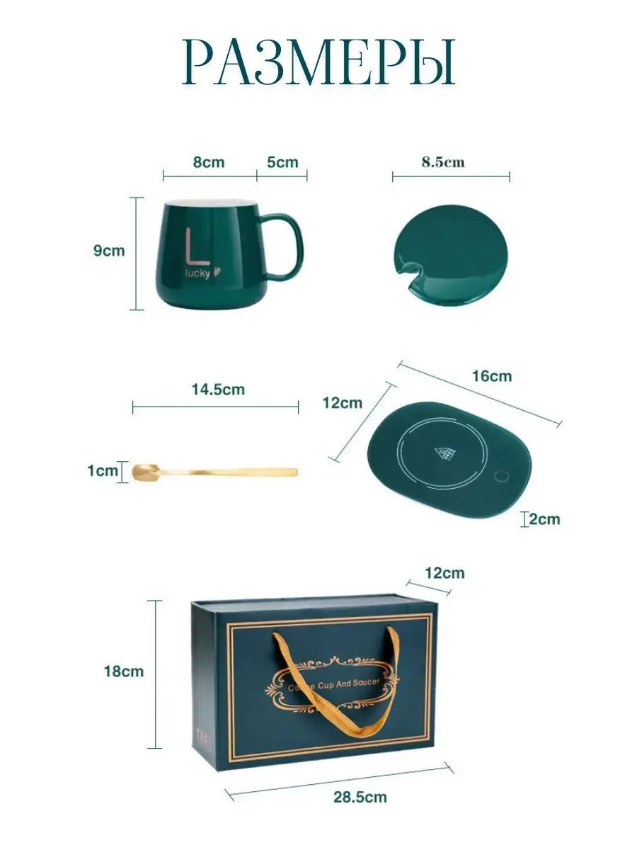 - Количество предметов в упаковке: керамическая кружка - 1 шт, подогревающая панель - 1 шт, ложка - 1 шт